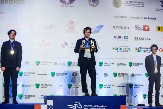 须眉快棋前三名:卡尔森、凯默尔和卡鲁阿纳