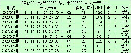 上期开奖:福彩双色球第2023024期开出奖号为:03 06 09 17 27 28 + 03yobo体育官方入口,其中红球奖号首尾间距为25,和值为90,质合比为2:4,蓝球开出质数号码。